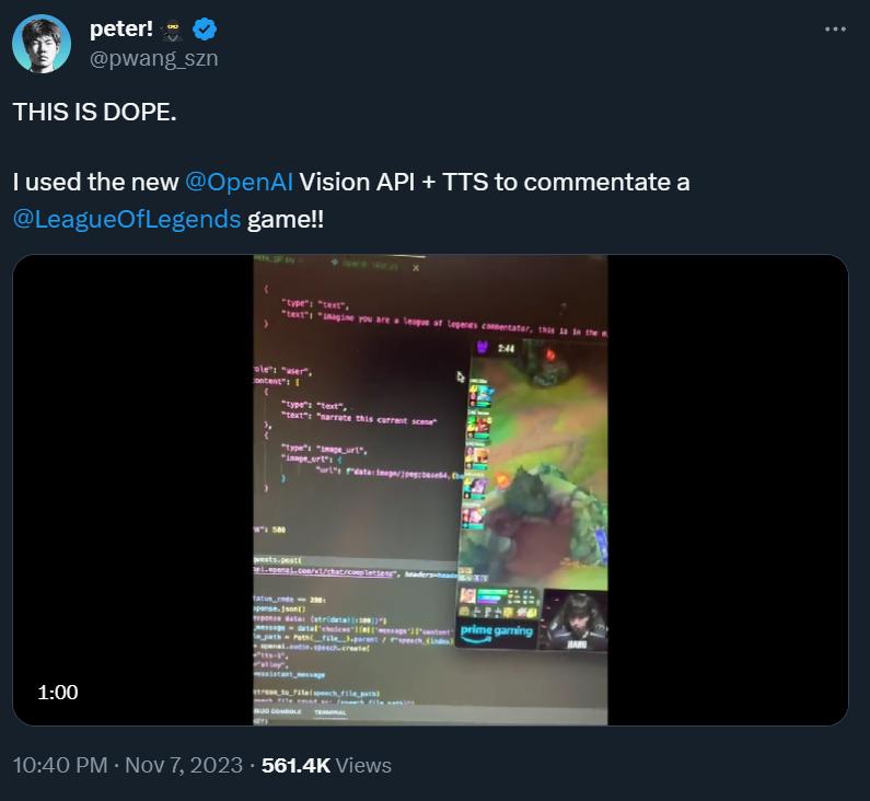 解说梅西球赛、英雄联盟,OpenAI GPT-4视觉API被开发者玩出新花样