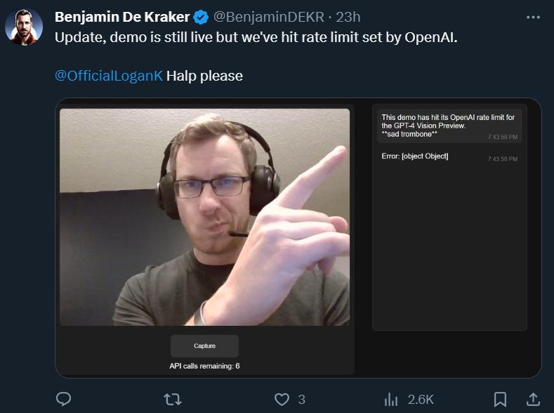 不过,这个实时效果的实验会受到 OpenAI 设置的速率限制。