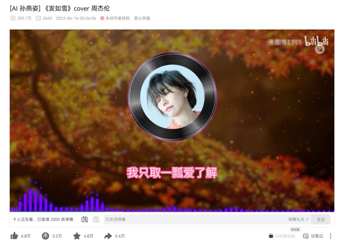 音乐领域的上一个大热点,莫过于上半年的“AI孙燕姿”。在B站等平台上,运用开源项目So-vits技术的AIGC版孙燕姿歌曲被数以千计地生产,能唱《发如雪》也能唱《好汉歌》,“AI出来后第一个失业的是孙燕姿”一度登上微博热搜。
