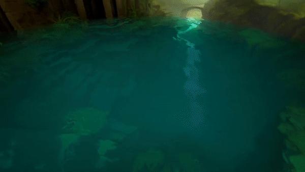 在 Blockade Labs 官方推特发布的示例中,你可以跳入湖中探索水下神庙的奥秘,台阶和苔藓的细节清晰可见,岸边与水下看到的倒影光影变幻也让人身临其境。