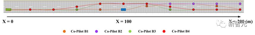 在该实验中,假设有一辆自动控制的汽车在预设路径上行驶,研究人员给定Co-Pilot当前车辆状态、路段情况等信息,要求其选择最符合当前乘客意图(如保证速度、紧随轨迹、体验舒适)的运动控制器。
