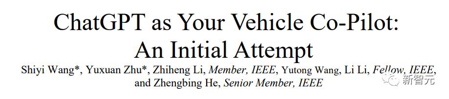 论文链接:https://www.researchgate.net/publication/374800815_ChatGPT_as_Your_Vehicle_Co-Pilot_An_Initial_Attempt