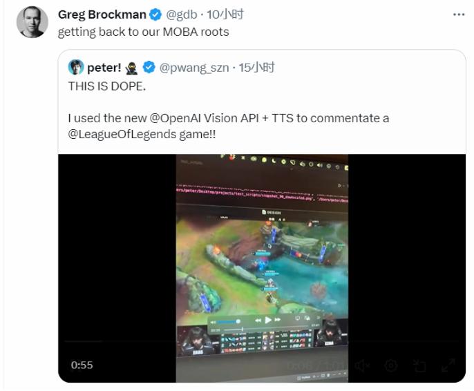 除了足球比赛,也有网友用新的 GPT-4 V 和文本转语音 API 创建了电竞 AI 解说。但就听感而言,虽然这场比赛特无语(懂的都懂),但这“解说”偏陈述性的语调确实也让人犯困。