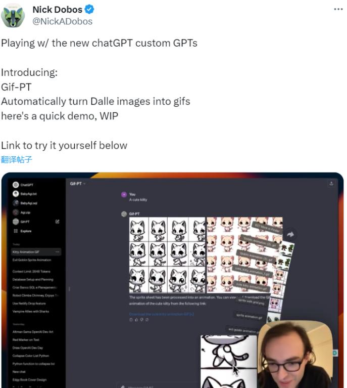 此外,他还打造了 Gif-PT,可以自动将 Dalle 图像转化为 gif。复杂的工作流程统一化,以后作图斗图可谓是更方便了。