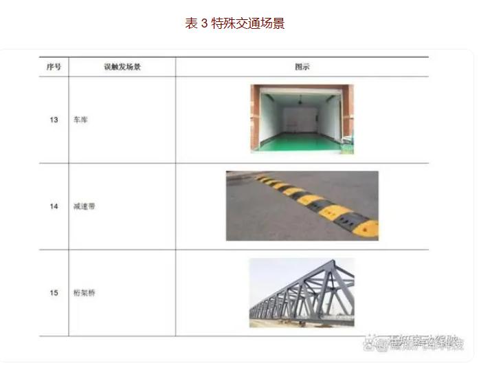 还有一些可能误触发场景:交通信号灯、洒水车的水柱或喷溅的水花、路面上的铁柱子或空中钢管、前方漂浮的塑料袋或路面上滚动的易拉罐、地下停车库、高速公路收费站、井盖等。