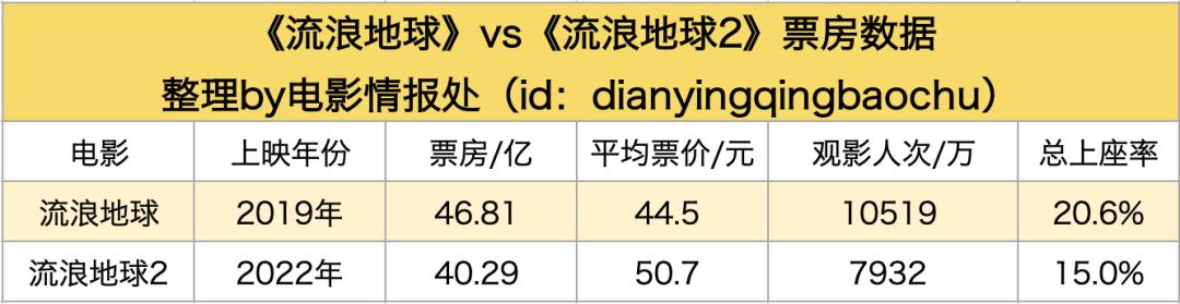 从两部影片的票房表现对比来看,也能看出《流浪地球2》对比前作的弱势。虽然同样是40亿+票房量级,看上去没有差太多。但是考虑到2023年春节档对比2019年13.9%的票价上涨幅度,最终《流浪地球2》对比前作的观影人次下降了24.6%,相当于有2500多万人,看在了前作的基础上,并没有继续走进影院看《流浪地球2》,这也是影片主创需要反思的问题。