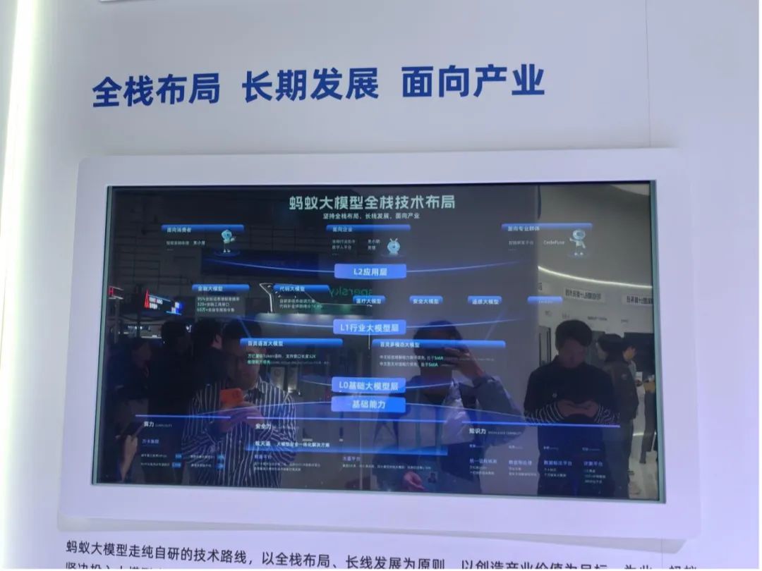 “蚂蚁大模型走纯自研的技术路线,以全栈布局、长线发展为原则。此前过于强调应用层的能力,却忽视了对于底层技术的介绍,如今也正准备将这些技术介绍出来。”有现场人员对新浪科技表示。
