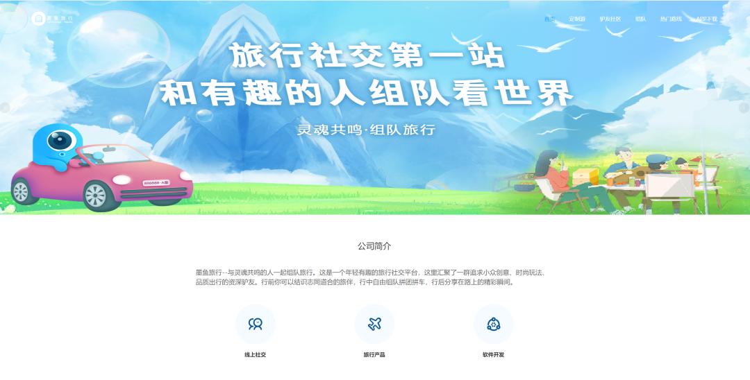 再从墨鱼旅行官方介绍来看,称其是一个年轻有趣的旅行社交平台,汇聚了一群追求小众创意、时尚玩法、品质出行的资深驴友。“行前可以结识志同道合的旅伴,行中自由组队拼团拼车,行后分享在路上的精彩瞬间。”