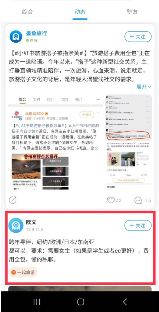 事实上,“搭子之交”最近确实很火,只不过从相关消息来看,某些平台出现的“旅游搭子费用全包”成了涉黄暗语,旅游中搭子消失爽约时有发生;旅游搭子交换出行信息时还会遇到骗子……