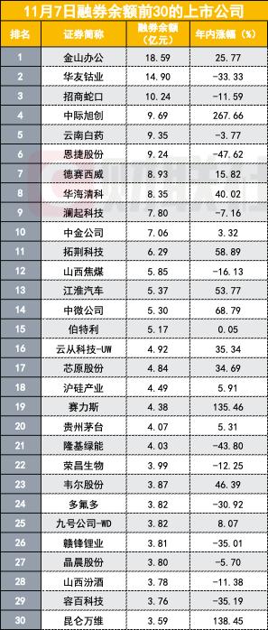 从融券数据来看,融券新规对于市场融券行为规范起到了积极作用。从全市场融券角度来看,截至11月7日,全市场融券余额近670亿元。金山办公是融券余额最高的个股,为18亿元,融券余额超过10亿的还有华友钴业和招商蛇口。全市场有126家上市公司融券余额过亿,65家过2亿,15家上市公司融券余额过5亿。