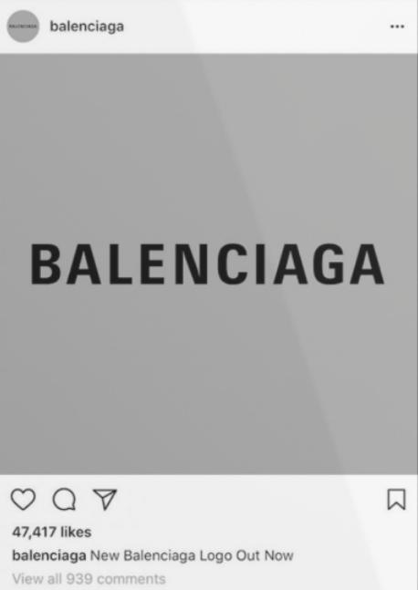 2017 年,巴黎世家官方 Instagram 发布了一张新 logo 的图片,此后灰底黑字成为巴黎世家的标识性存在,从产品包装到广告海报不断强化消费者的认知。聪明的你一定已经发现——这次的围挡就长这样。