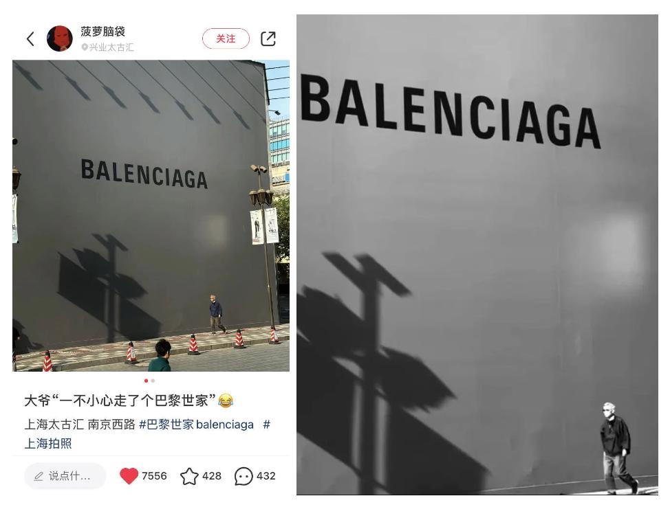 说到这里,也不难理解围挡为什么红了,巴黎世家在街头,还有比这更方便实惠的片场吗?巴黎人想拍得混进时装周秀场,上海人想拍只需要出门citywalk。