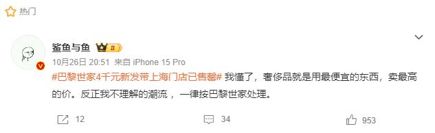 网友说:“反正我不理解的潮流,一律按巴黎世家处理。”对于一个品牌而言,消费者认知达到这个程度,是多么值得欣慰的肯定。