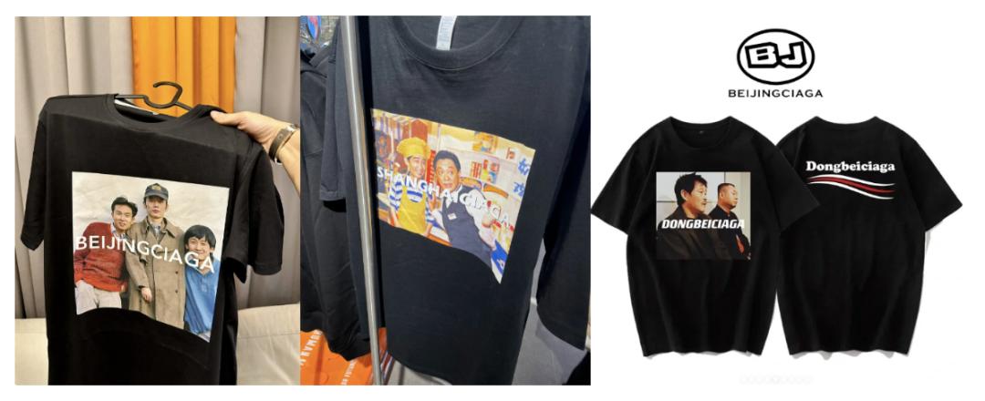 创作主要在黑白底T恤上进行,正面印花加logo,背面仿巴黎世家的波浪纹排版,同样加上logo。北京世家主要二创《我爱我家》和《顽主》,上海世家印《老娘舅》,东北世家是《乡村爱情》和《马大帅》的舞台。