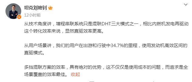 魏品牌总经理兼任TANK品牌总经理刘艳钊随后发了条微博,似乎是回应李想的观点: