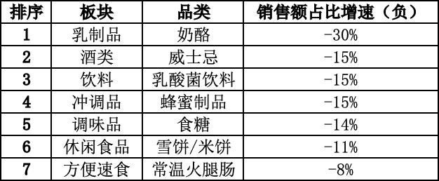 与品牌高端布局恰好相反,整个消费大环境中,升级似乎遥遥无期。2023年1-6月线下零售消费数据分析,在七大食品消费板块中,不少品类下降严重。甚至连奶粉都在拒绝消费升级,《中国新闻周刊》报道,大部分热销国产婴幼儿奶粉的价格都在近几个月出现了几年来的最低价,且降价活动更加频繁。