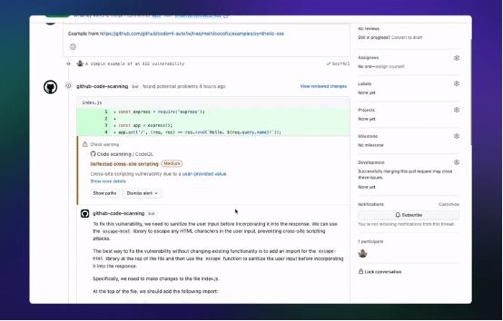 GitHub Copilot 中的代码扫描 autofix 自动修复功能。