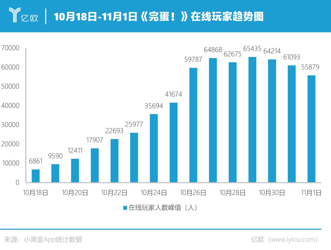 自10月18日上线以后,这款游戏很快就登顶了Steam国区热卖榜(排除免费游戏),截至11月9日仍然名列榜首。根据小黑盒统计的数据,开服两周,《完蛋!》平均在线玩家人数峰值接近4万人,10月29日在线玩家人数峰值更是达到了6.5万人。