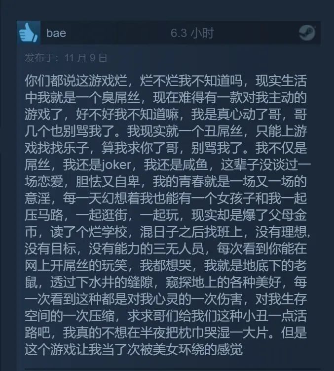 而“被美女包围”的爽文特色,更是进一步强化了玩家的情感体验。正因如此,即便《完蛋!》被不少人吐槽剧情庸俗、场景尴尬、转折突兀、设定割裂,还是有很多玩家忍不住上头。“你们都说这游戏烂,烂不烂我不知道吗?我就只能上游戏找找乐子。”