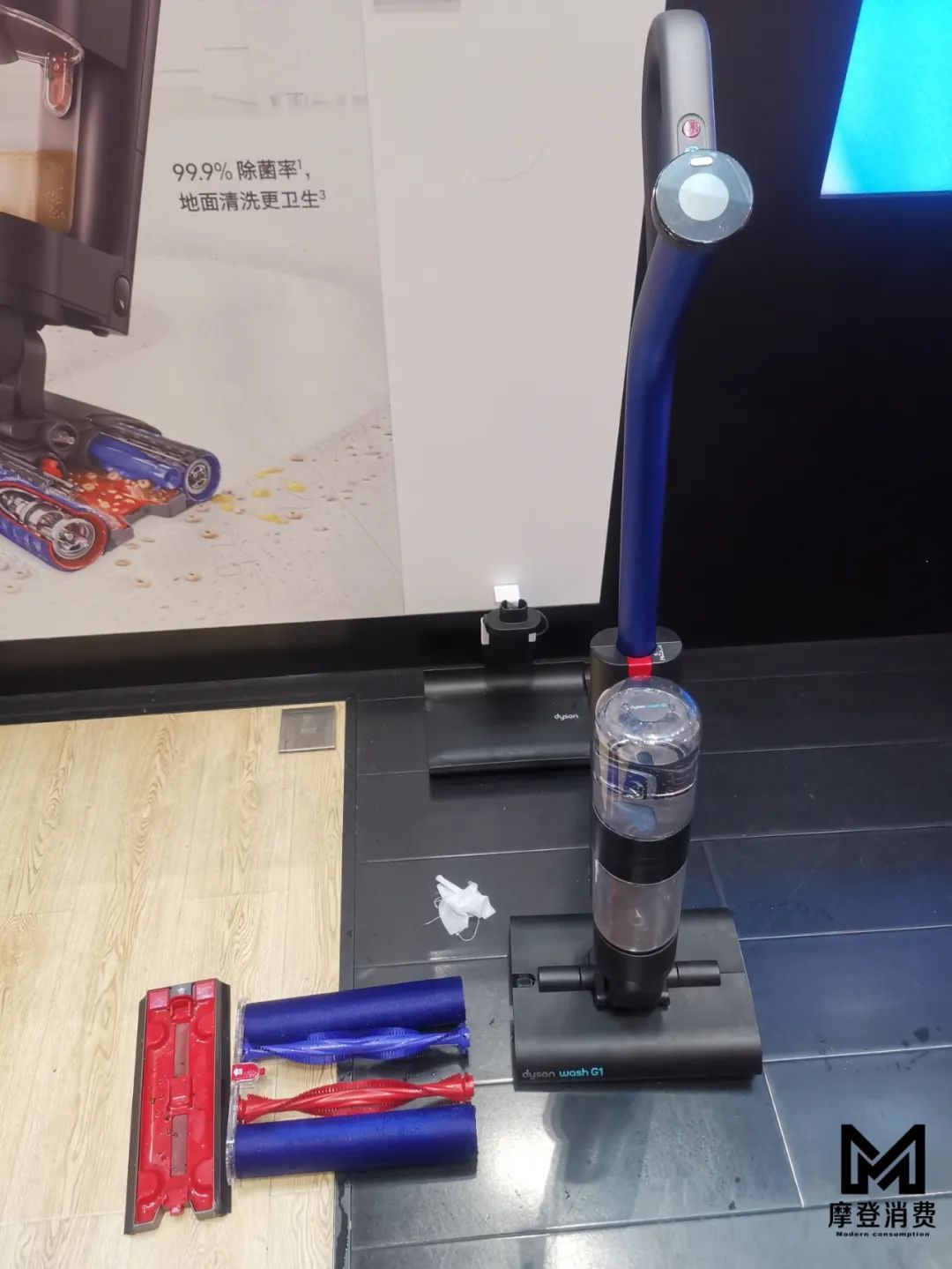 而且,「摩登消费」在上述门店体验完戴森WashG1洗地机后,还发现拖过的地面有残留的水渍。