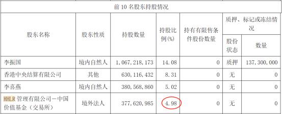 但高瓴资本在三季度末持股比例已从此前的5.85%降至4.98%,不再是5%以上股东,后续减持也无需再行公告。