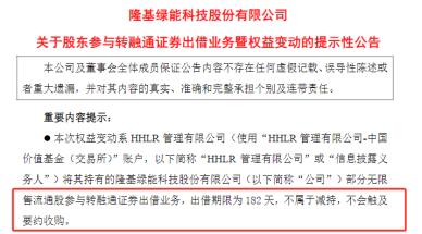 隆基绿能三季报明确表示,“截至报告期末,HHLR管理有限公司-中国价值基金(交易所)通过转融通方式出借的股份已全部到期归还”。