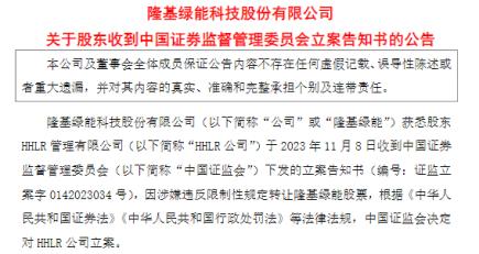 公告声明,隆基绿能的股东HHLR管理公司,也就是高瓴资本旗下管理的基金,被证监会揪了出来,理由是涉嫌违反限制性规定转让公司股票。