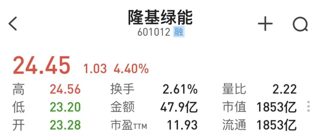 3.16亿股,花了158.4亿的对价,一股折合人民币50元,这就是高瓴资本的持股成本,而今天隆基绿能的股价是多少呢?