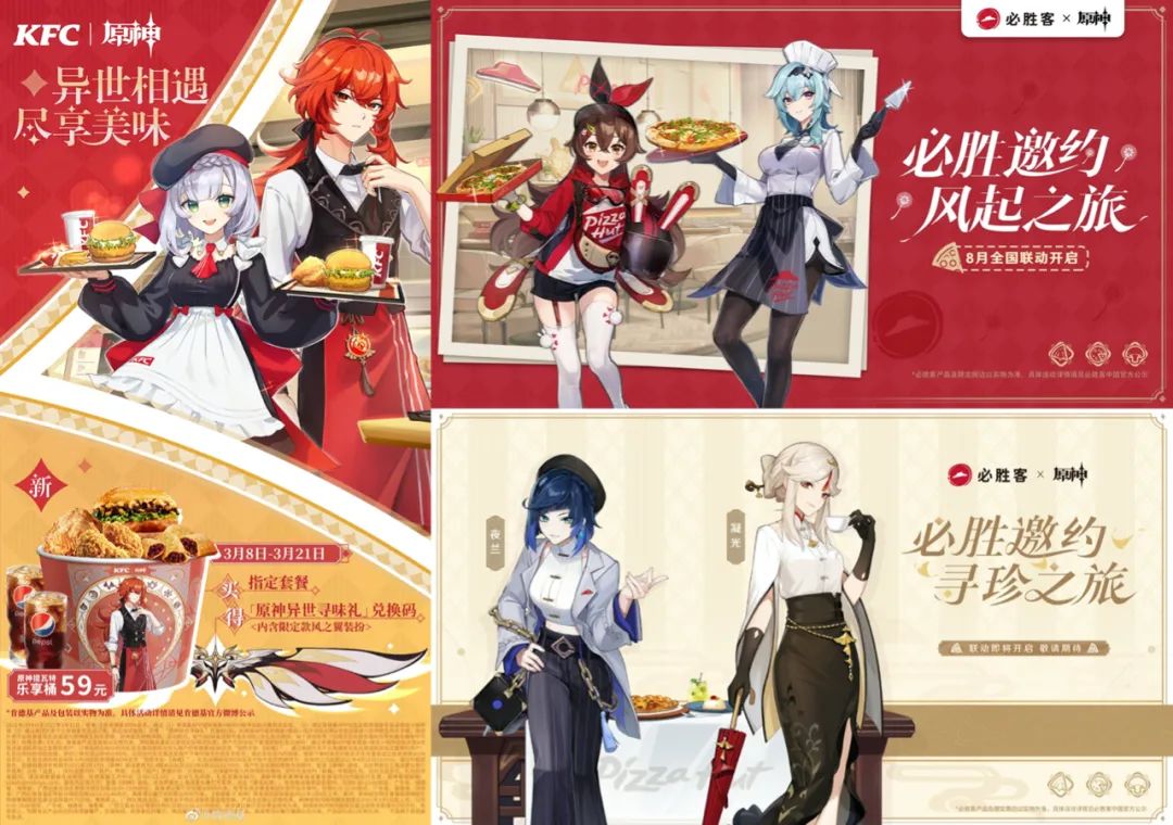 往近看,今年2月,原神和必胜客联动第二弹正式上线,套餐预售活动一经开启,必胜客APP瞬间被“挤崩”,与此同时,#必胜客崩了#、#必胜客回应崩了#、#原神必胜客#、#必胜客原神联动#等话题也迅速登上热搜,目前相关话题总浏览次数超10亿。原神交易超话内随处可见游戏内联动物品兑换码的求购帖,某二手平台上的“代吃”“代买”等黄牛现象也层出不穷。