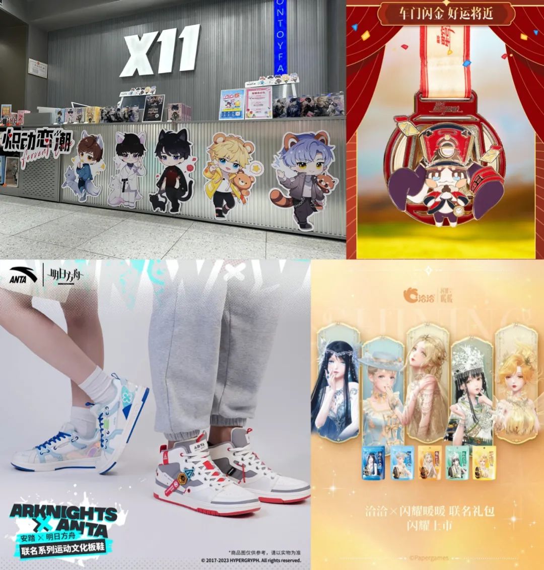 图源微博,依次为光与夜之恋x X11、星穹铁道xKeep、明日方舟x安踏、闪耀暖暖x洽洽