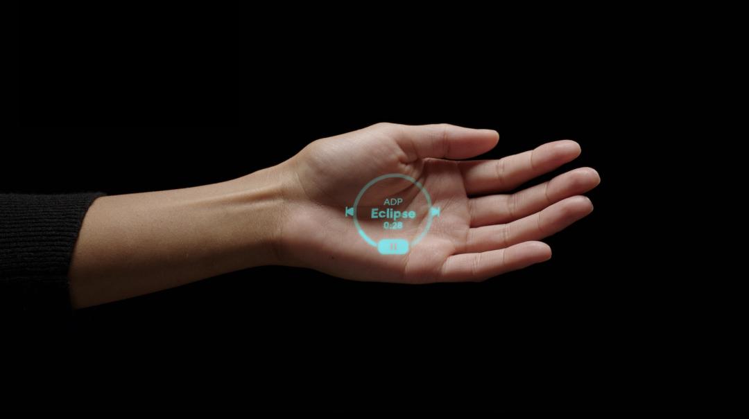 倾斜手部,可以变换显示的选项,而挥动手势,则可以滑动到不同的菜单,用户通过拇指和食指并拢轻按「单击」选项,然后短暂合拢手就会返回主屏幕。