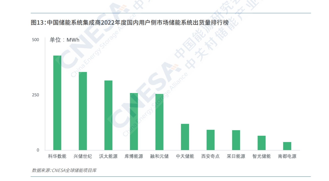 值得一提的是,作为业内权威机构,中关村储能产业技术联盟(CNESA)曾对2022年国内用户侧市场上储能系统出货量前十位做过排名,科华数能、兴储世纪、沃太能源位居前三位。