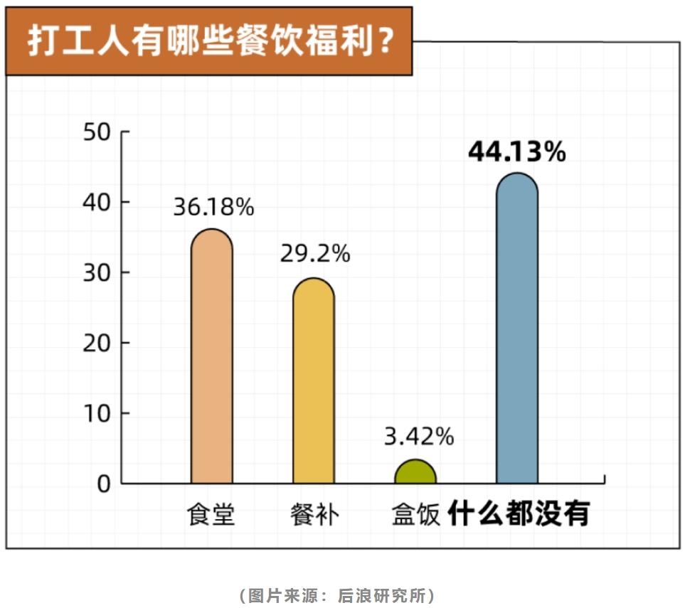 对预制菜的无条件抵制,多少有点“何不食肉糜”和“站着说话不腰疼”的意思。将预制菜形容成“猪狗食”的人,初衷可能是抵制这个行业,但也无意中伤害了“社畜”的心:如果有条件,谁不想吃的更好呢?根据后浪研究所的《2023打工人干饭报告》,44%的打工人没有食堂、没有餐补、没有盒饭——没有任何餐饮福利。
