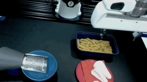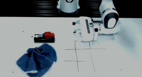 之后,机器人配备了一系列参数化的基本技能,例如Pick(x,y,z)、Place(x,y,z)、Push(x,y,z,d)。