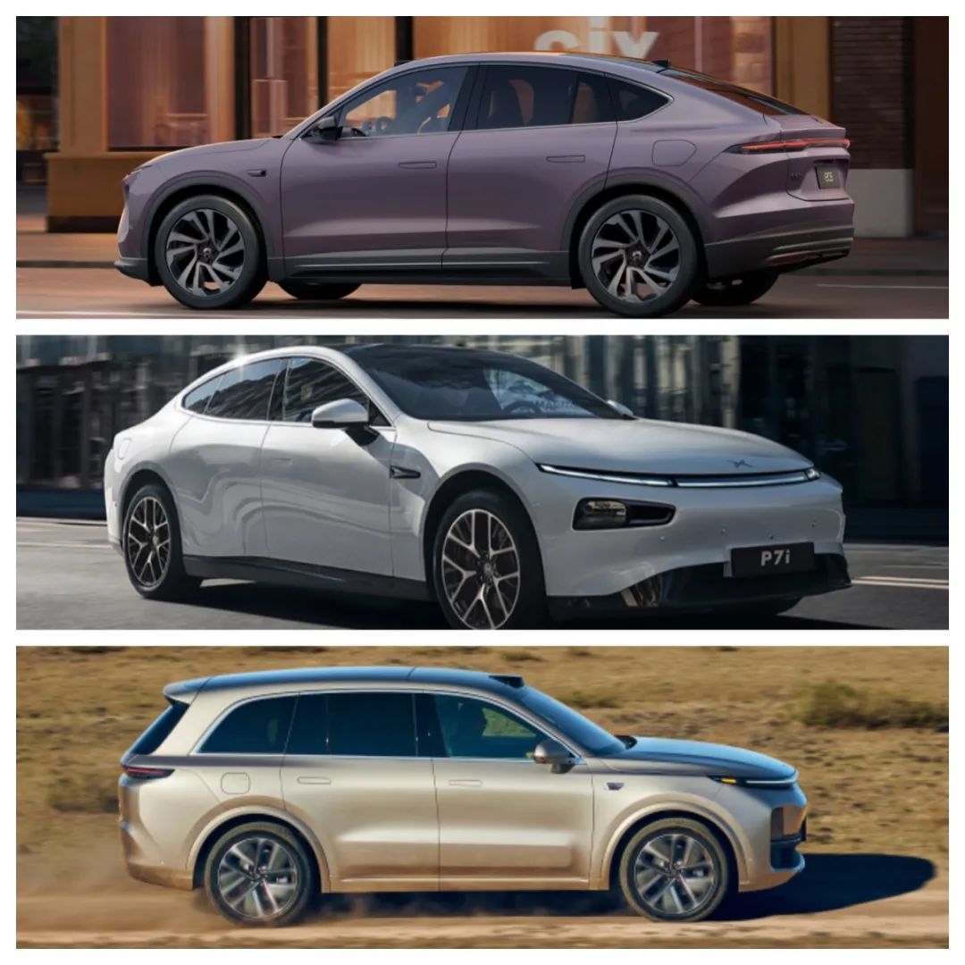 蔚来、小鹏、理想的主打车型都配备了隐藏式门把手,图片来源:相关车企官网