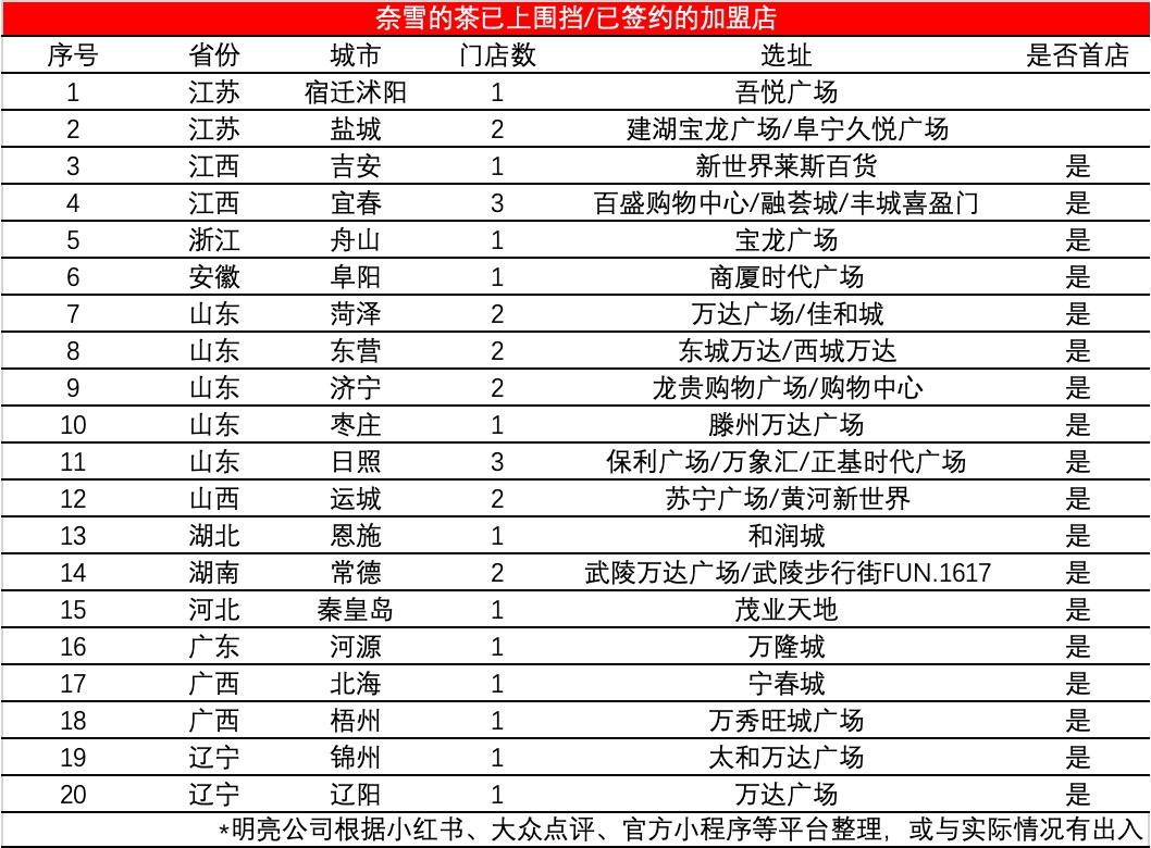 梳理奈雪首批加盟店:主打「加盟直营0差别」,低线城市多家首店