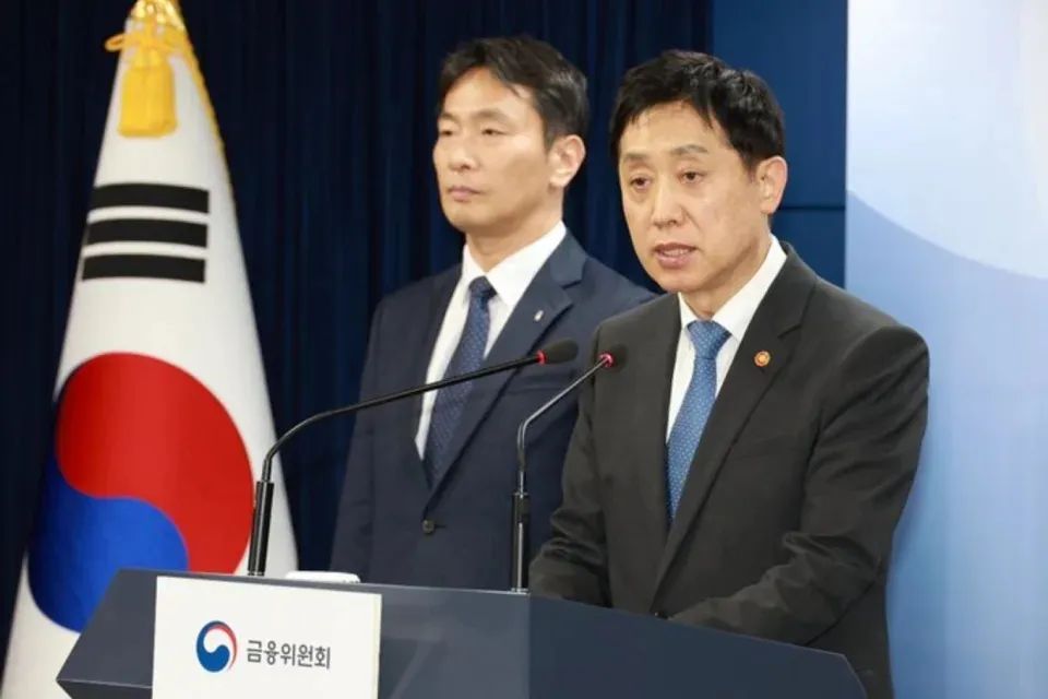 △韩国金融服务委员会委员长金周显在发布会上讲话(图源:社交媒体)