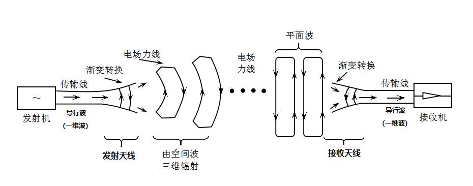 更专业点来说,天线就是一个“转换器”——把传输线上传播的导行波,变换成在自由空间中传播的电磁波,或者进行相反的变换。