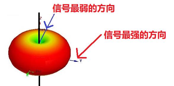 大家可以看到,信号传播方向是垂直于天线。也就是说,天线顶部指向的方向,信号反而最弱。