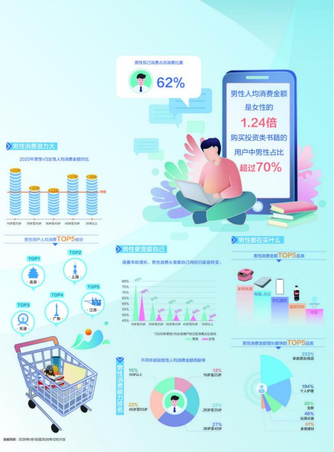 同样是在2020年,经济日报联合京东的数据就显示,2020年男性人均消费金额是女性的1.24倍。