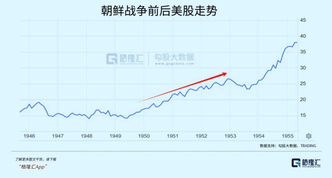 战争前几年,美股不出意外,如朝 鲜战争一样,稳定上涨。