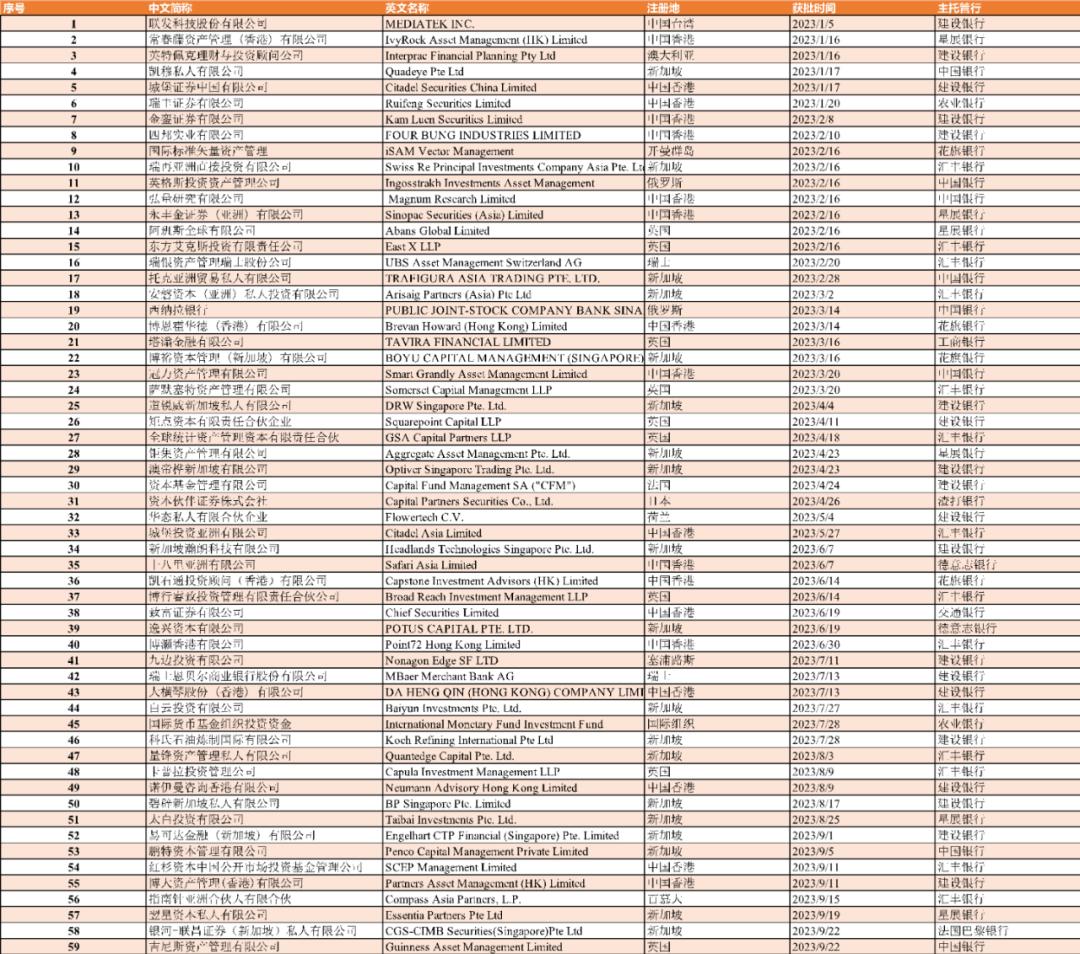 另据中国证监会官网,截至2023年9月底,今年已有59家机构获批为合格境外投资者。
