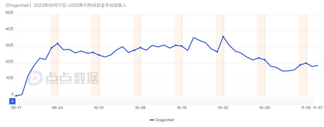 点点数据显示,《Dragonheir: Silent Gods》全球市场双端总收入约为1280万美元(约9380万元)。(已扣除渠道分成)