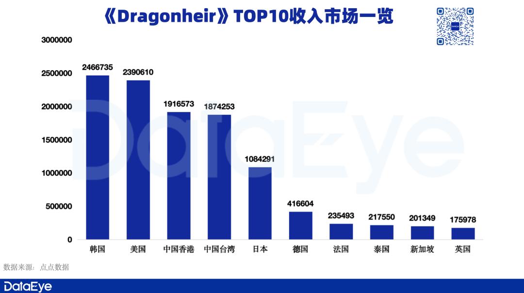 整体来看,得益于游戏的品质感,上线初期《Dragonheir: Silent Gods》确实在全球各地取得不错的成绩,但其也暴露了一些隐患,譬如在美国市场的成绩就是较为明显的特征。