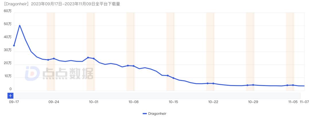 从下载数据可以看到,《Dragonheir: Silent Gods》是多点开花。