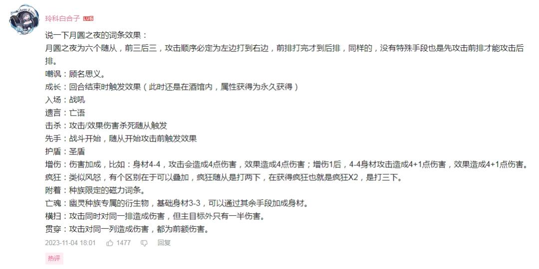 节目的评论区下,点赞最多的第一条,是《月圆之夜》玩家对照《炉石传说》对游戏机制做的详细科普,希望其他观众能够看懂视频中游戏展现的趣味。