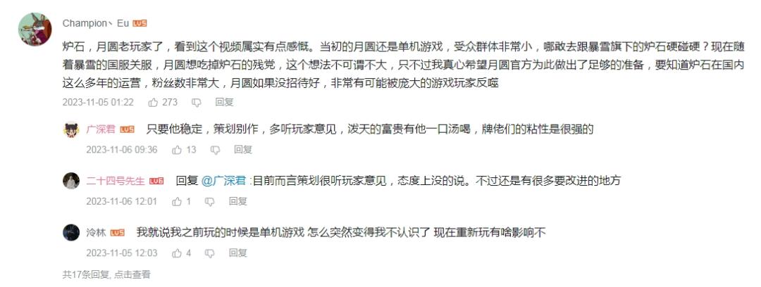 而在点赞第二条高的评论则说出更多玩家的担忧:希望《月圆之夜》能接住这破天富贵,又担心游戏走变形被反噬。