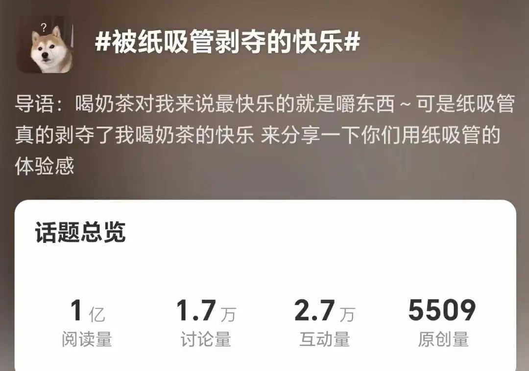 微博话题#被纸吸管剥夺的快乐#,阅读量已高达1亿丨图源:微博截图