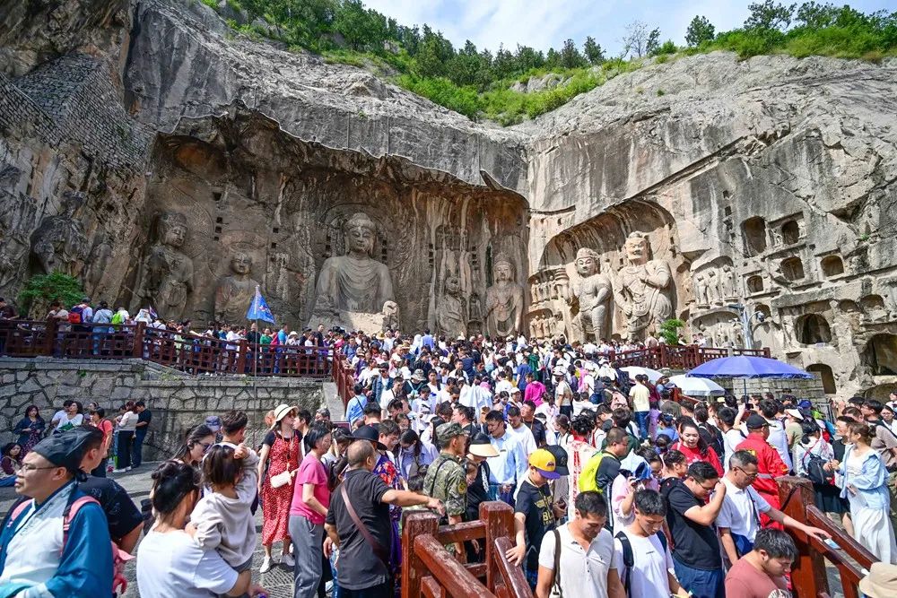 今年“十一”期间,洛阳龙门石窟景区内游人如织 图片来源:新华社