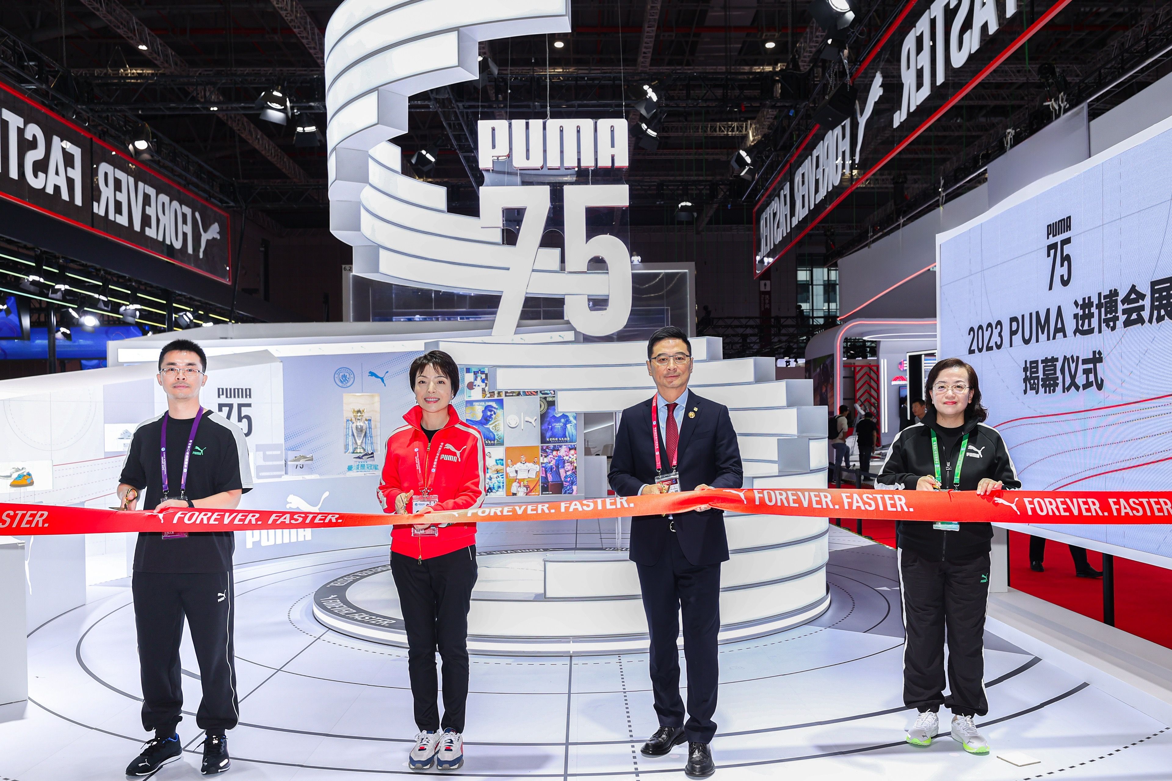 全球知名运动品牌彪马于品牌成立75周年之际,再度亮相中国国际进口博览会(以下简称“进博会”)消费品展区。11月6日,国家会展中心(上海)有限责任公司董事、总裁助理章伟民先生、上海市体育局规划产业处余诗平处长、上海市黄浦区体育局潘敏虹副局长莅临,与彪马中国区总经理李敏女士一同携手揭幕以“彪马75周年,彪速未来”为主题的展台。